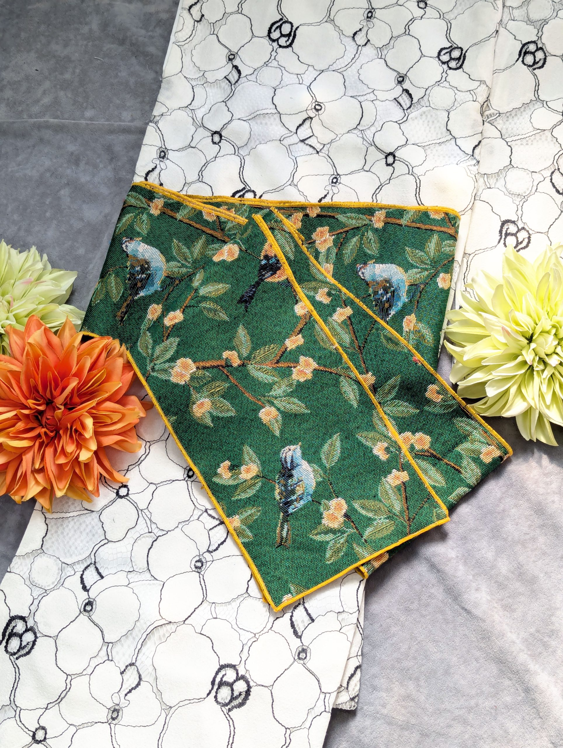・半幅帯 ・両面・全通・幸せをもたらす青い鳥・濃い緑