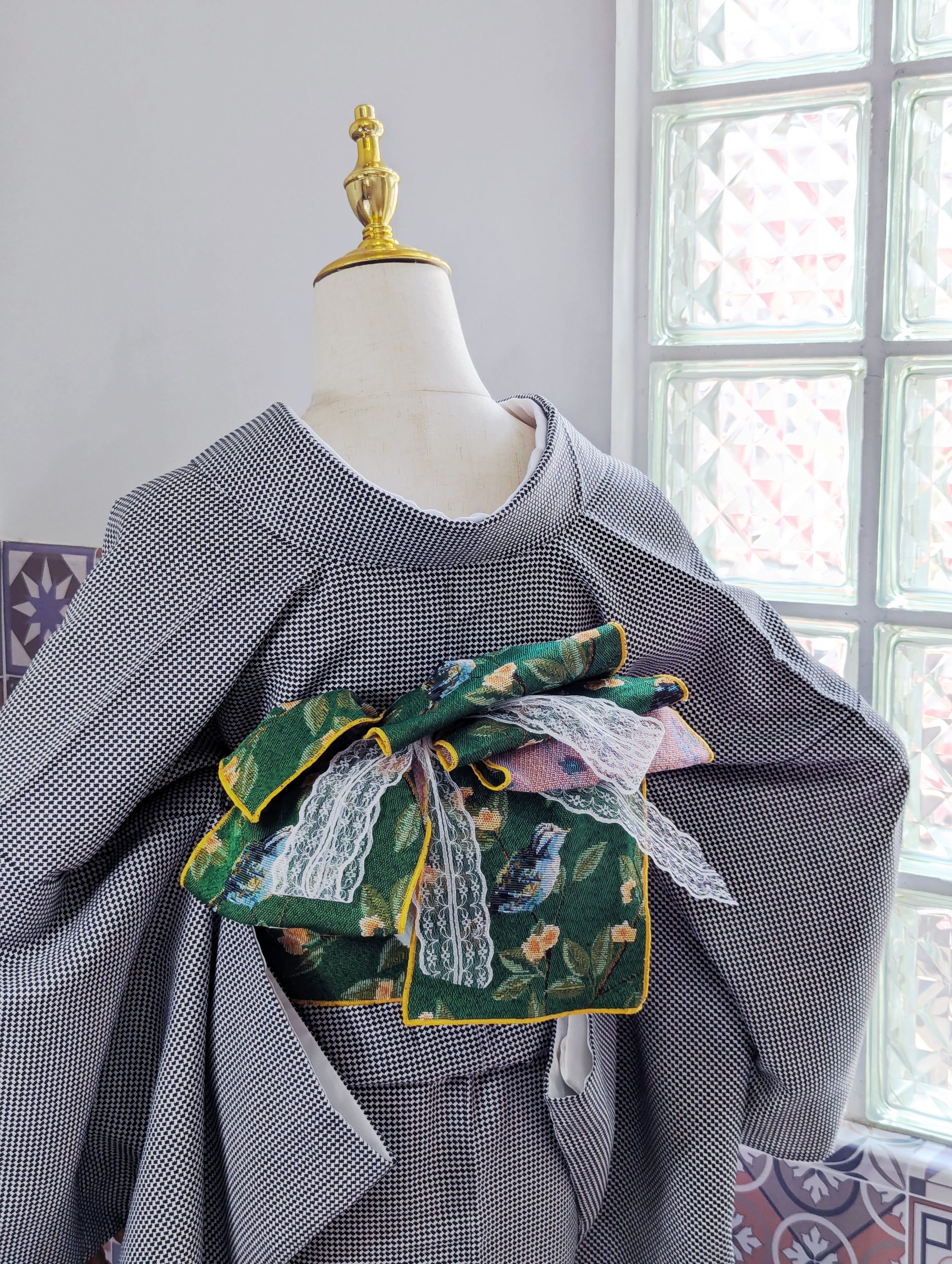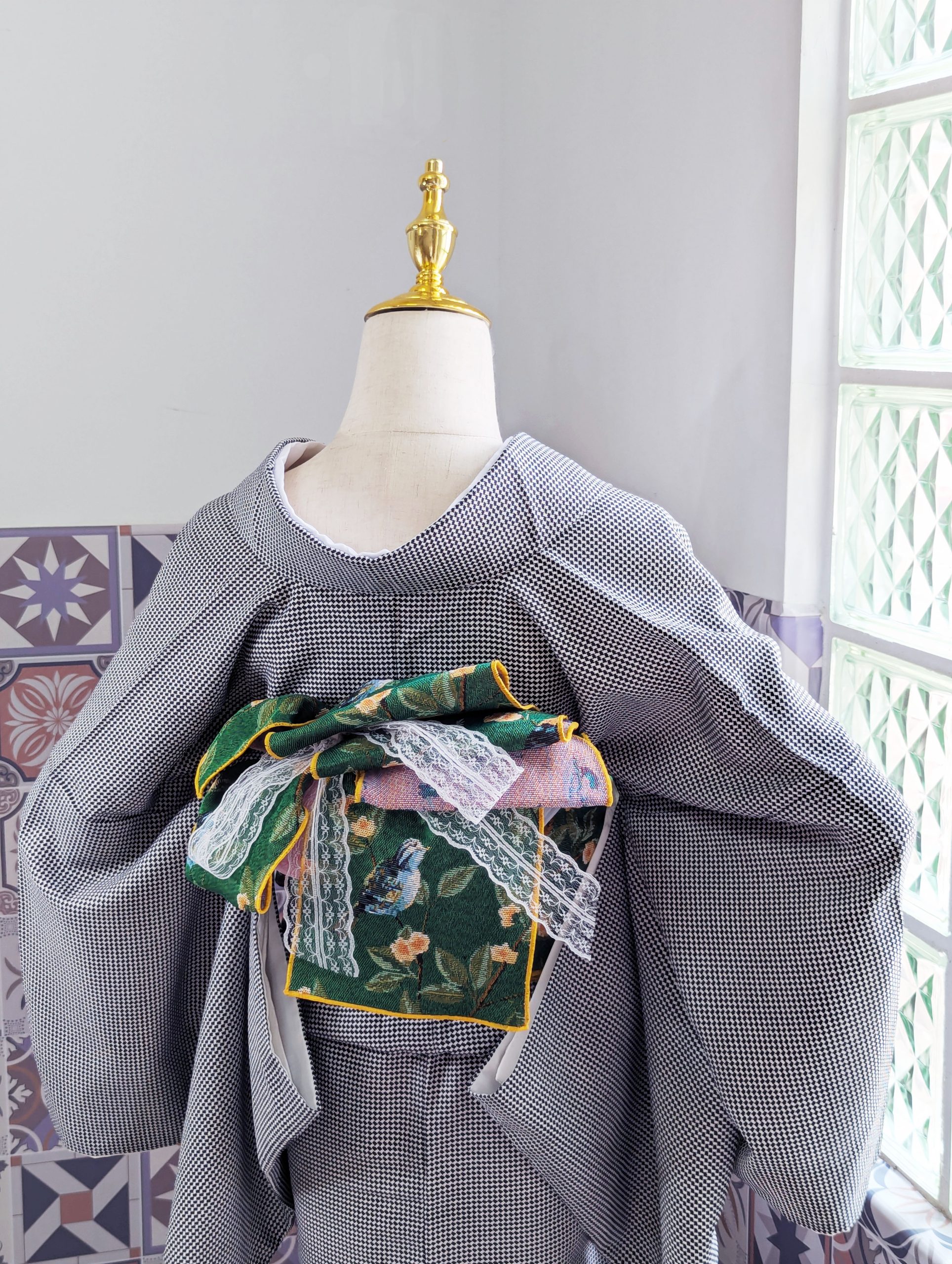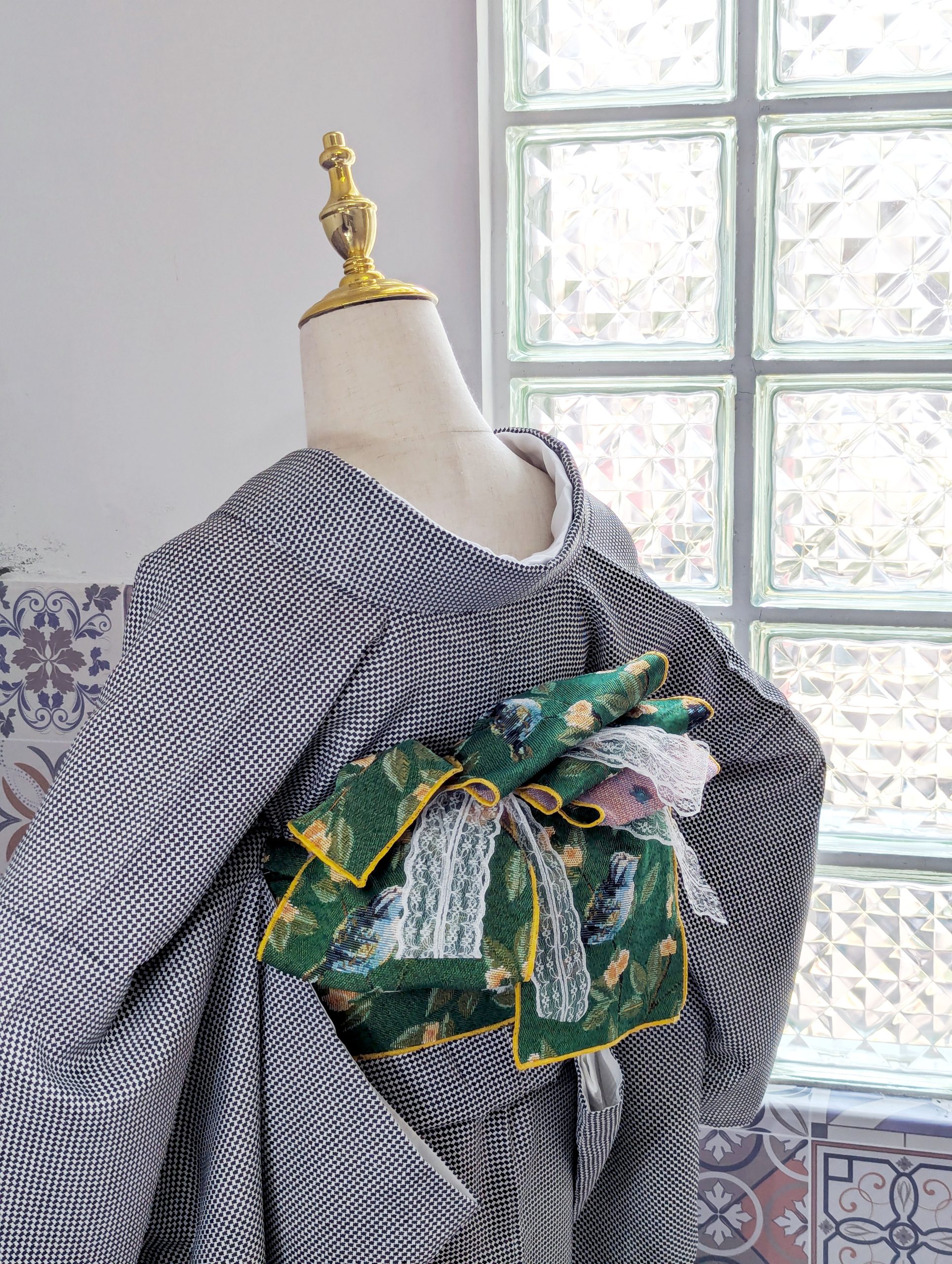 【洋粋youiki】和洋風格和服腰帶。半幅帶。傳遞幸福的青鳥 (濃綠)