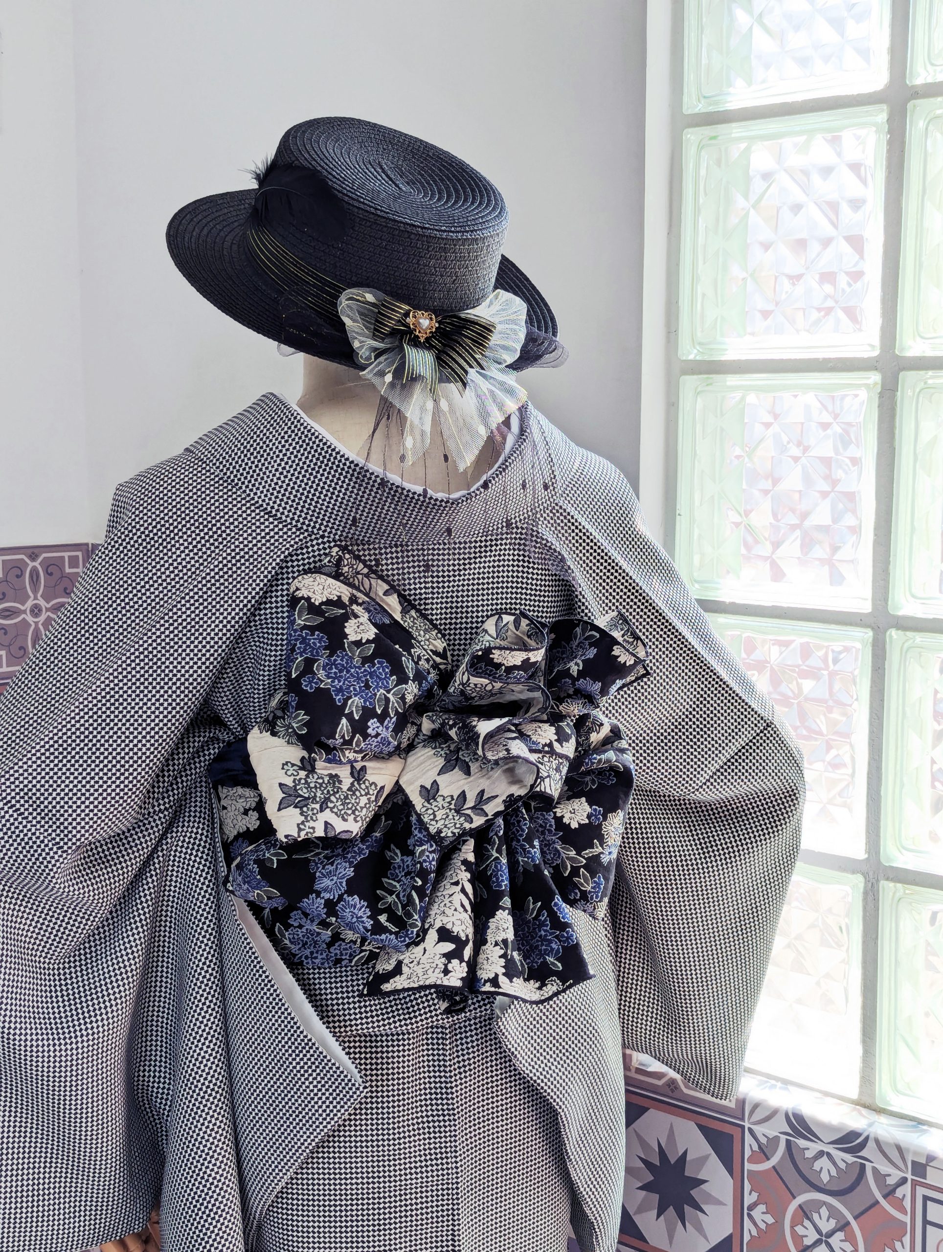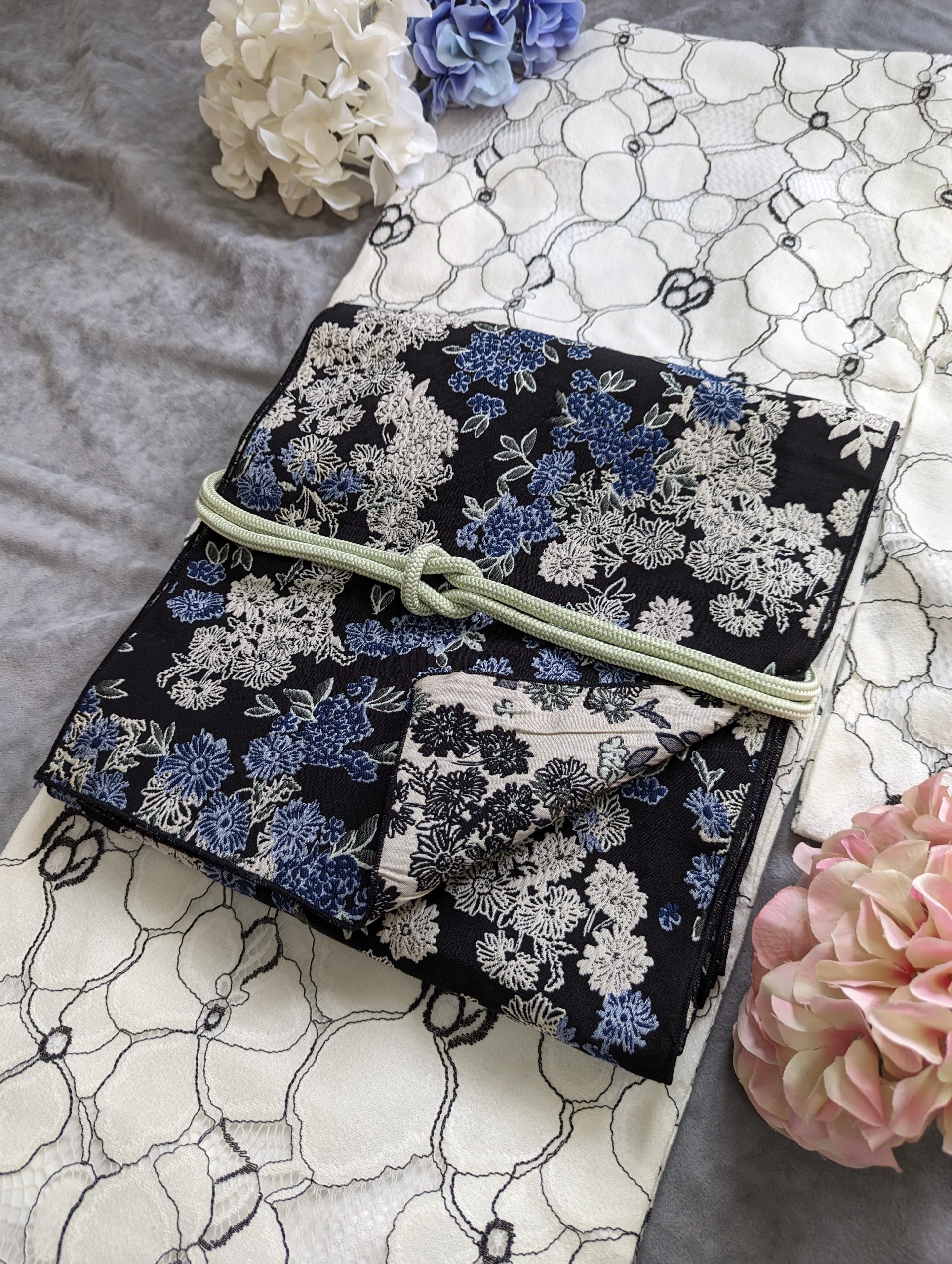 【洋粋youiki】和洋風格和服腰帶。大人の兵兒帯。藍色雛菊 (雙面雙色)